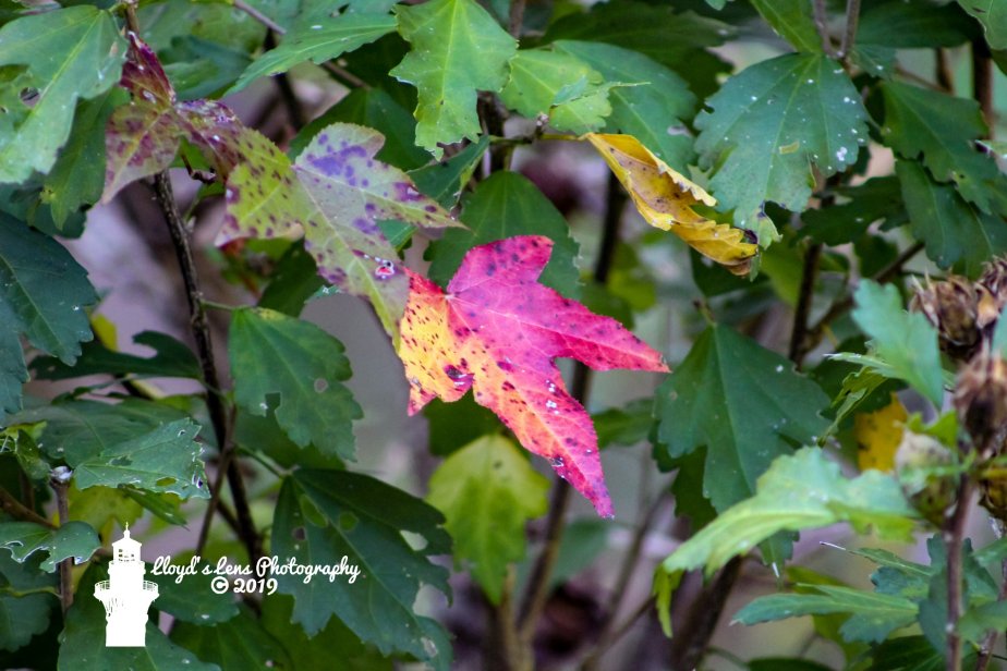 1. I’ve noticed more of them this year than in previous years. Mature Sweet Gum normally turns yellow in my area and the seedlings turn red. But I’ve also seen it in a viburnum which makes me think it’s either a soil condition or that the wavelength of light was different this year.