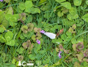 Between the rainy days and the warming weather my yard has gotten to a point that would give a Home Owners Association a coronary. But that’s okay. The bees and butterflies are loving the extra bloom to feed on. I had been surveying the landscape for any sign of an increase in the honeybee population when one of the flowers suddenly sprung to life and lifted into the air. I have seen the little white butterflies before and although they’re pretty I presumed that I was seeing a cabbage looper. A hungry creature that destroys gardens. But, as often happens when we presume I was wrong. What I was seeing wasn’t even a moth much less one that is after our beloved veggies. This is the West Virginia White!( Pieris virginiensis.) While this ghostly little butterfly bares the name of my home state it’s found all over the Appalachian Mountains and up into Canada. And, it’s only interested in hosting on one plant. The toothwort is host of choice for the West Virginia White. However, I have learned that an invasive plant known as Garlic Mustard somehow confuses the little West Virginia White and that the larvae can’t survive on them.