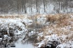The Trapper rose one more time to the chilling bite of winter and stoked his fire. The truth was that he spent more time keeping his fire hot throughout the the night than he did sleeping. The thick mat of evergreen boughs was just barely enough to keep him off the ground and he had to continually roll over to warm both sides of his body throughout the night. He was thankful that the Good Lord had seen fit to preserve his life in this ordeal but he also felt like a pig being roasted on a spit from rotating all night. As soon as he got the fire going he warmed himself over the fire once again and checked his clothes. Finally they were dry enough to put on. He held them over the fire a bit to get inside good and warm. It was good to be able to go more than a few feet from the campfire. He would now be able to search the edges of the creek for his lost equipment and set up more of a proper camp. The first thing he found was his boat that had come to rest on bank not far from where he’d spent the night shivering. The bore of his swivle gun was full of mud but otherwise undamaged. It was solid brass and once he was back at his cabin he could clean it out and it would be good as new. The powder on the other hand was nowhere to be found. He cut down a small maple tree with his axe and fashioned a lever to help him right the small watercraft and to steady himself on the uneven ground. A little farther downstream he found his tin pot for cooking and the stash of jerky which was also in a small tin with a scewtop lid. The lid kept most of the water out but the jerky had already begun to swell a little. Most of the smaller items were missing but he did manage to find his Kentucky long rifle that had been custom made for him. He swung open the brass plate on the side of stock and found that his patches and .36 caliber balls were still there. The plate on the other side held rendered fat that he used to maintain and lubricate the mechanisms that made the gun work. Most fortunately he found the the but plate was also intact and that’s where his spare flints were carried. If not for the loss of his powder he would have been able to fire his gun within a few minutes of cleaning it. He placed all these items in his boat and drug them up near the fire. He gathered a few cattail rootstocks from the edge of the creek as well as some wild mushrooms and with his recovered jerky he made a thin soup for breakfast. He then began to make a more proper camp. With his axe he dug a pit and placed the evergreen boughs in the bottom. The pit was long enough to lay down in and he covered it with his boat propped up like a leanto. The pit was 3 feet deep and 3 feet wide. It wouldn’t be really comfortable but it would get him below the frost and with a few stones warmed by the fire it would keep him from freezing to death while he slept. In case of any rain he would simply lower his boat over the hole and stay dry. The next thing he needed was a way to catch some food. He found a shallow place in the creek and with some stones he set up a weir to trap some fish. He made a gig by using the axe to split the maple staff into 4 prongs at one end held them in place with pegs and lashings of willow bark. Then he returned to his fire and waited. He was so busy that he didn’t notice the little feet that swiftly moved through the bushes away from his camp. Feet that would carry the story of a red haired giant to his family.