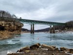 In absolute silence the frozen lake stretches out through the painted sandstone walls. Some of markings tell the stories of local teenagers who speak in tones of acrylic and aerosols. The other markings are God’s work. The latter being made of different minerals that are part of the stone. Subtle shapes that resemble petroglyphs and tell the dreamer the most fantastic tales in a language known only to the imagination. The thin glazing of ice also speaks of the sleeping world beneath the thin pane of frozen crystal. Half buried in the soft bottom sleeps a leviathan of a catfish which dreams of the chase and another miraculous escaped from the hook. He lives to be seen by those would be catchers and then to fade away into legendary stories told around campfires. The ravens glide slowly over the frozen mud ever watchful for the odd scrap of food left behind by some visitors to the ice. Their dark eyes miss nothing among the rocks. Not even the photographer who stands on the frozen mud and dreams of joining their patrol just so he can see what lays beyond the bridge in the distance.